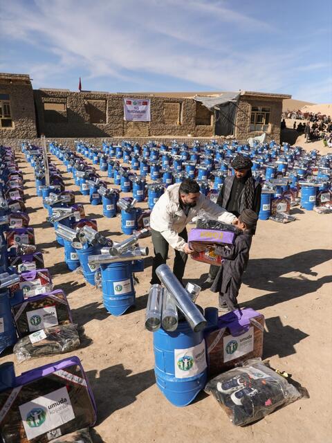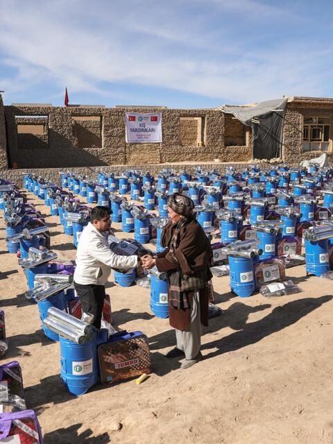 Biz de kış aylarında kolaylık sağlayabilmek için Mezar-ı Şerif, Samangan ve Kabil’de gerçekleştirdiğimiz dağıtımlarla, 1.000 adet kışlık kıyafet ve 1.000 adet battaniyeyi ihtiyaç sahiplerine ulaştırdık. Bunun yanı sıra ailelerin ısınma ihtiyacını desteklemek amacıyla 600 aileye soba, 40 aileye ise 1250 kg odunla 1500 kg kömür desteği sağladık.