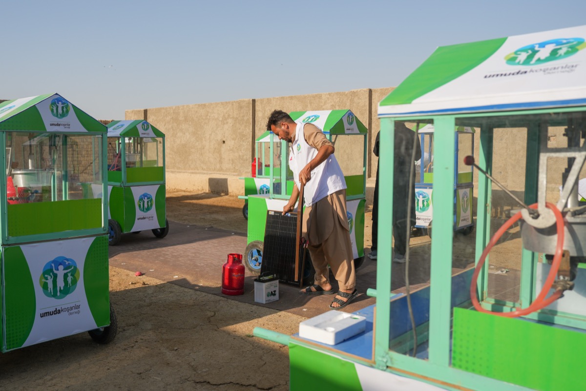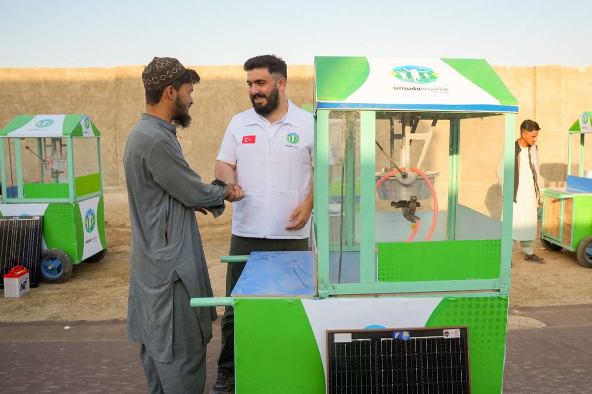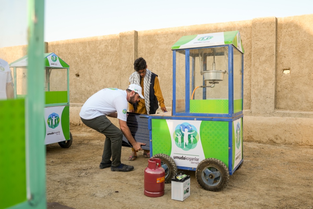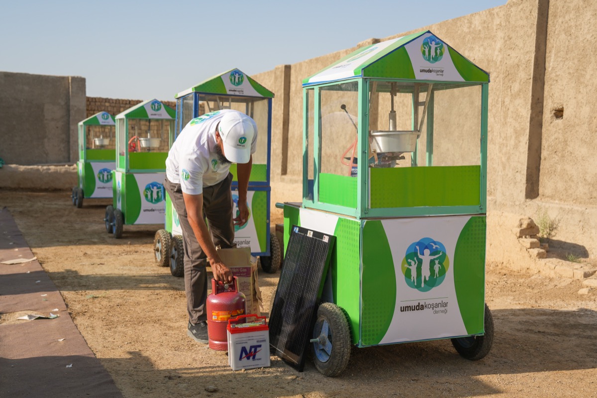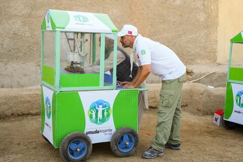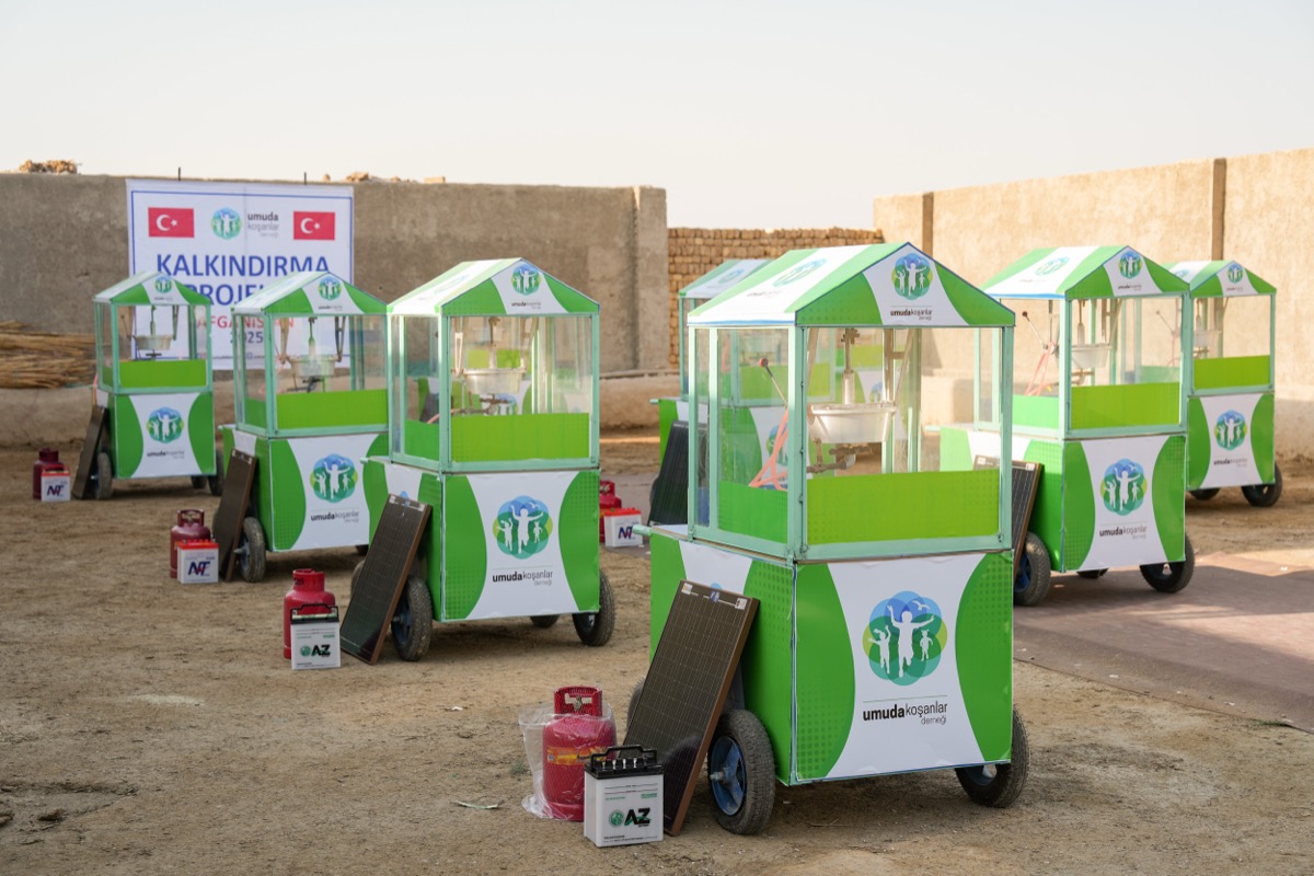 Saha çalışmalarıyla ihtiyaçlı olduğunu belirlediğimiz 20 aileye patlamış mısır tezgâhı teslim ettik. Bu tezgah ile satış yaparak maddi kazanç sağlayabiliyorlar.