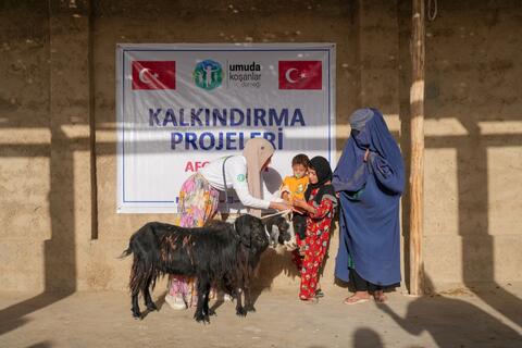 Afganistan’ın Mezarı Şerif ve Shabargan şehirlerinde, ihtiyaç sahibi ailelere yönelik toplam 100 dikiş makinesi ve 100 süt keçisinin dağıtımını planladık. Her bir makineyle ortalama 5 kişilik bir ailenin geçimine katkı sunulurken, çift olarak verilen keçilerle aynı ölçekte ailelerin gıda ve gelir kaynaklarına erişimini sağladık.