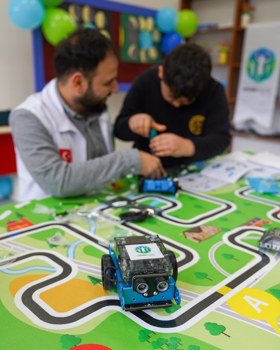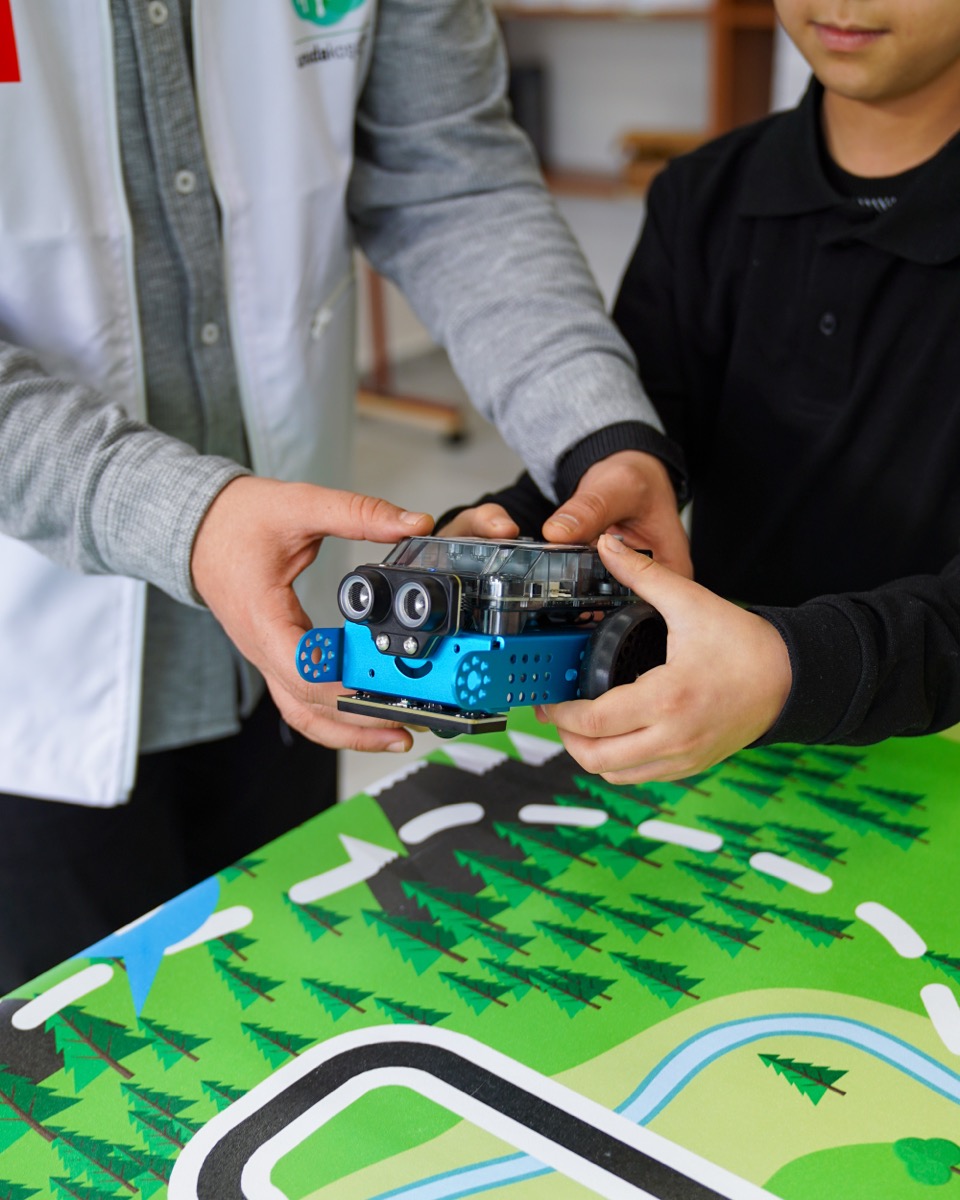 Eğitim yardımlarımız kapsamında gerçekleştirdiğimiz okul ziyaretinde; mBot2’den micro:bit setlerine kadar modern robotik ekipmanları okula teslim ettik.