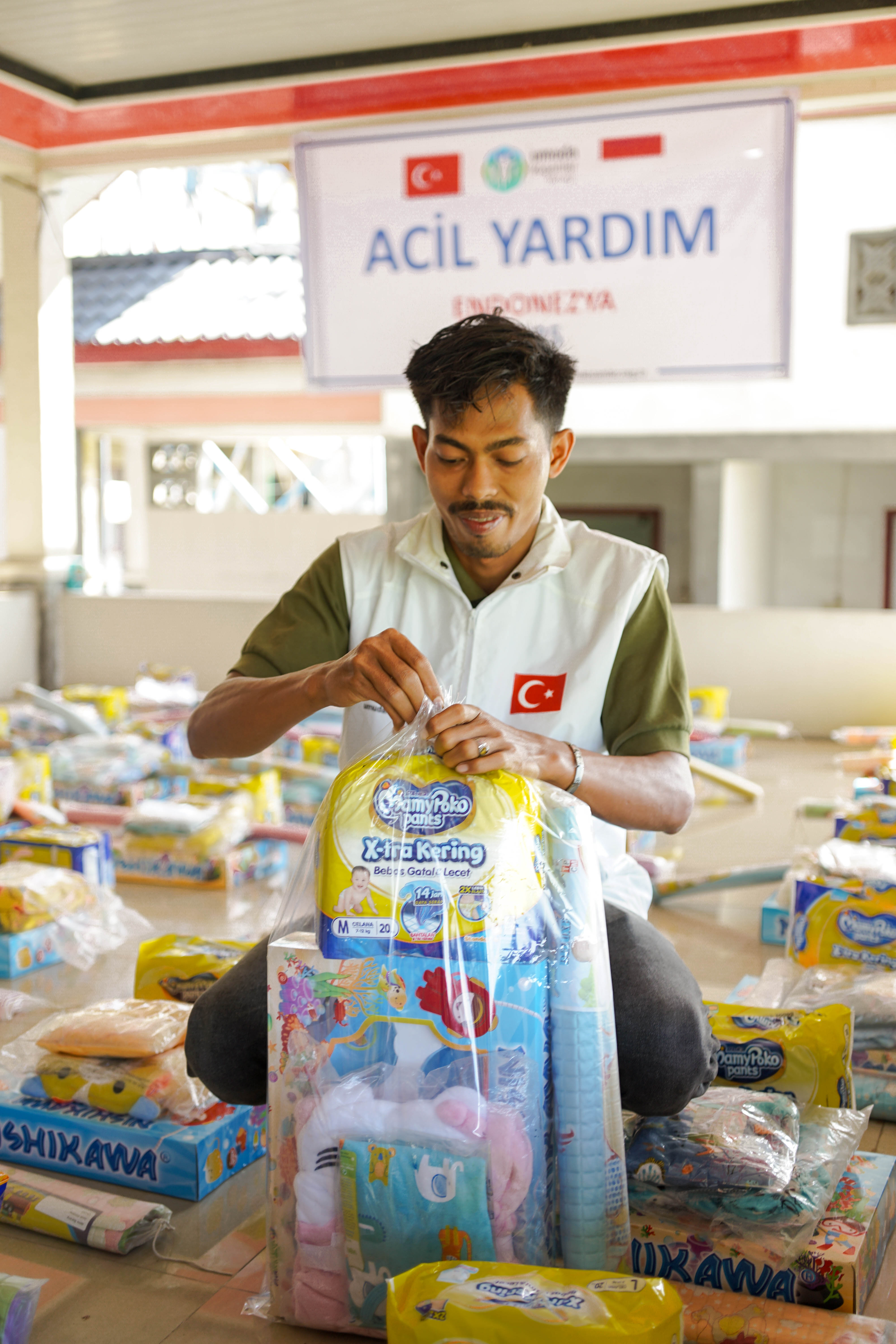 Bebek paketlerinde temel giyim ve beslenme ürünleri yer alırken; ilaç paketlerinde vitaminler, ateş düşürücüler, öksürük ve ishal ilaçları ile yara bakım ve hijyen malzemeleri bulunmaktadır.