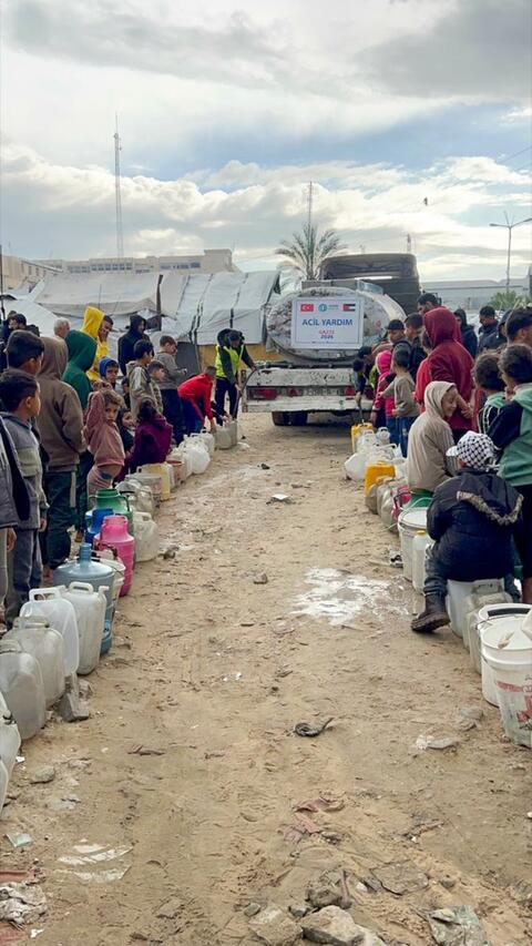 Gazze Su Temini Projemiz ile bu ihtiyacın çözümüne katkı sunmak istiyoruz. 2026 yılı boyunca acil içme suyu desteği sağlamayı planlıyoruz. Projemiz kapsamında her biri 5 ton kapasiteye sahip tankerler aracılığıyla bölgeye güvenli içme suyu ulaştıracağız.