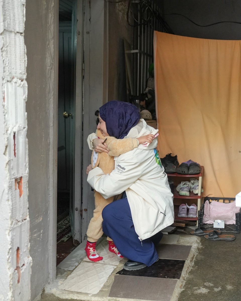 Saha ziyaretlerimiz sırasında, kış yardımı ulaştırdığımız hanelerden birinde sobanın başında oturan altı çocuklu bir aileyle karşılaştık. Odun ve kömür desteğini gördüklerinde yüzlerinde beliren rahatlama ifadesi, küçük gibi görünen desteklerin bir aile için ne kadar büyük bir anlam taşıyabildiğini bize bir kez daha gösterdi. Bu anlar, yalnız olmadıklarını hissettirmenin ne kadar kıymetli olduğunu hatırlamamıza vesile oldu.