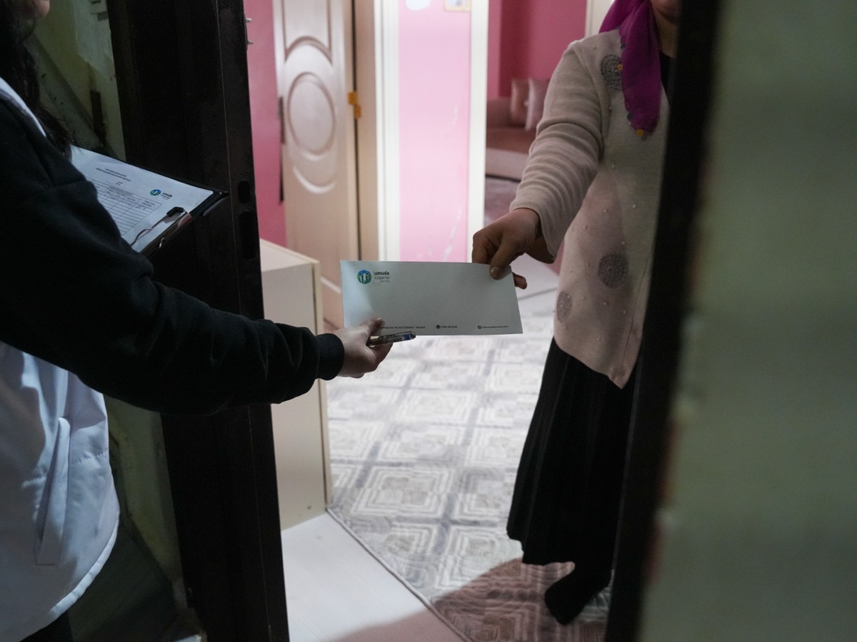 Saha çalışmalarında ziyaret edilen bir ailede, annenin sosyal yaşamının eşinin hastalığı nedeniyle ciddi biçimde kısıtlandığı gözlemledik. Kart teslimi sırasında, hayatında ilk kez kendi başına alışveriş yapacak olmanın belirsizliğiyle kartı nasıl kullanacağını bilmeyen anneye süreci adım adım anlattık. Ardından kartı göğsüne bastırarak, “Çocuklarımla alışveriş yapacağım, çok mutluyum” sözleriyle duygularını paylaştı.