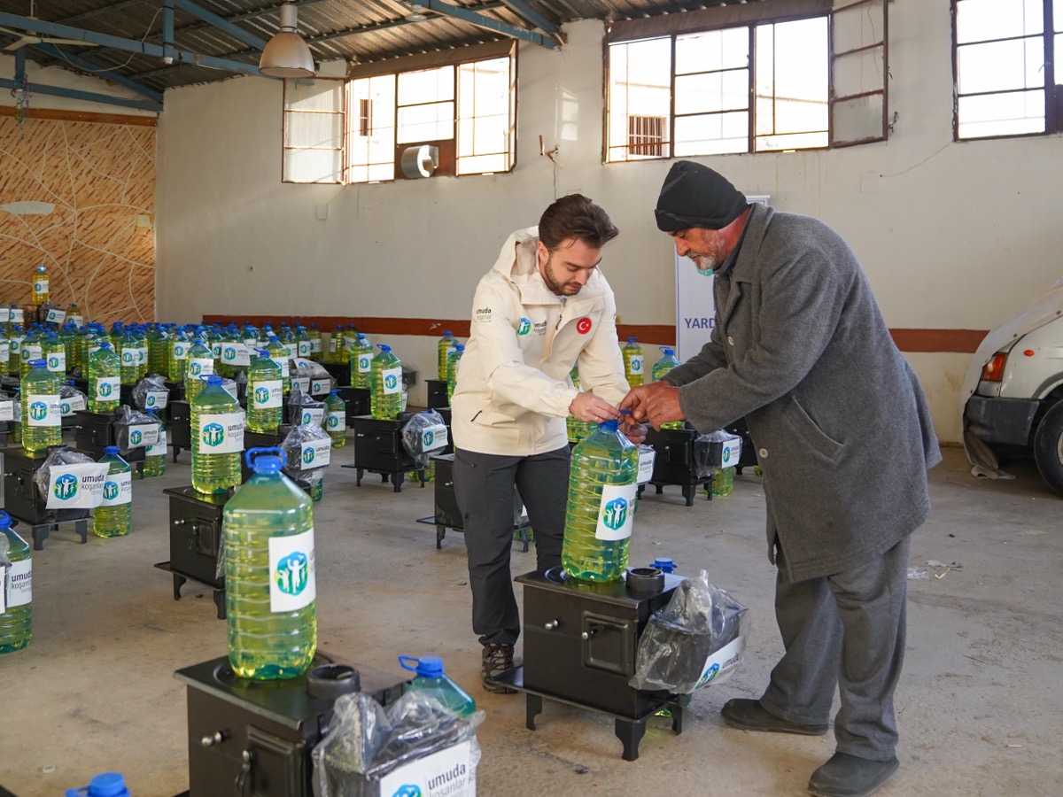 Bu amaçla sahada yaklaşık 4.500 kişinin faydalanacağı bir destek çalışması gerçekleştirdik. Gecelerin biraz daha sıcak geçebilmesi için 250 aileye yakıt sobası ve her birine 18 litrelik yakacak desteği ulaştırdık.