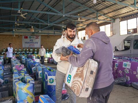 Çocukların ve ailelerin soğuk hava koşullarında daha korunaklı olabilmesi için 500’er adet battaniye, mat, mont ve kışlık pijamayı ihtiyaç sahibi ailelere teslim ettik.