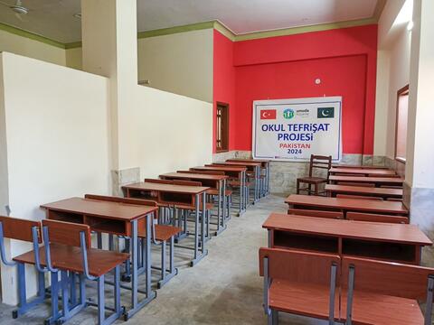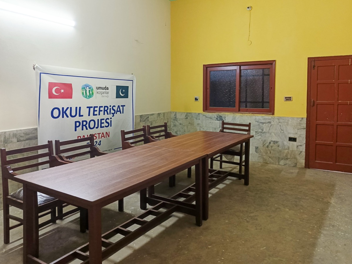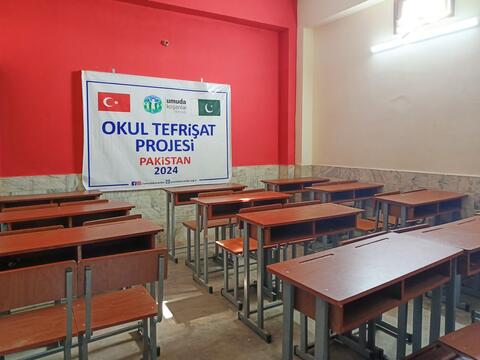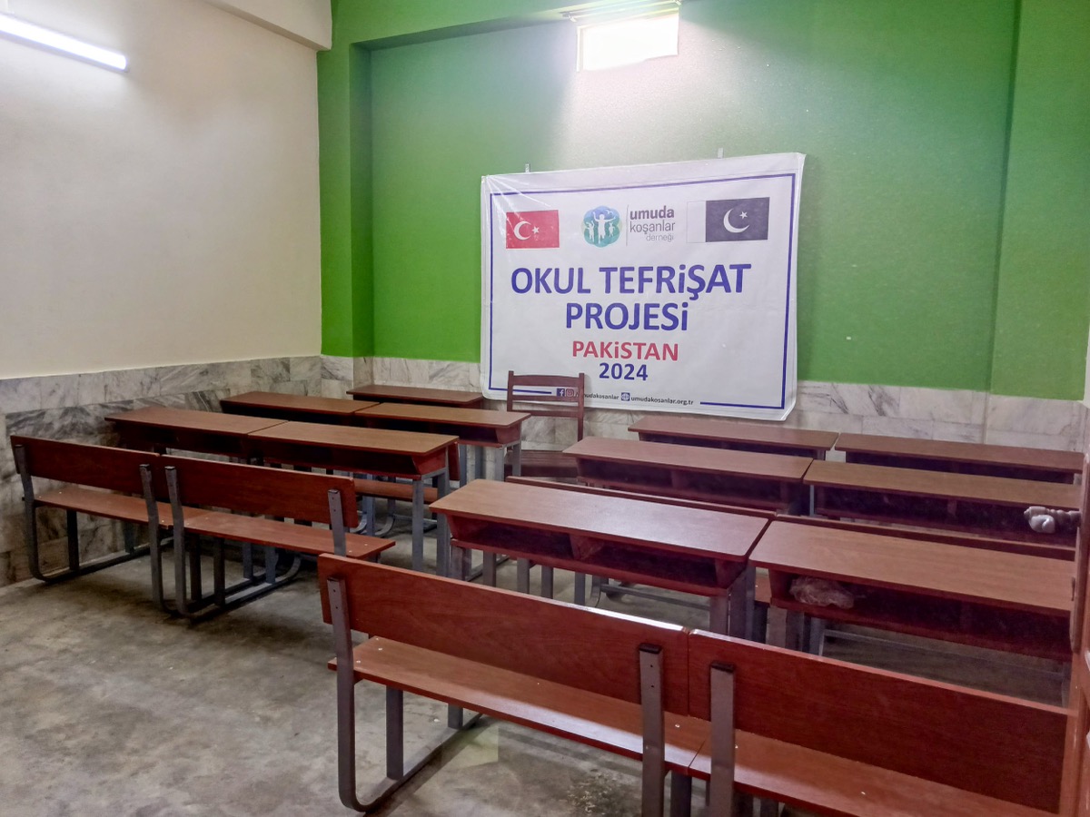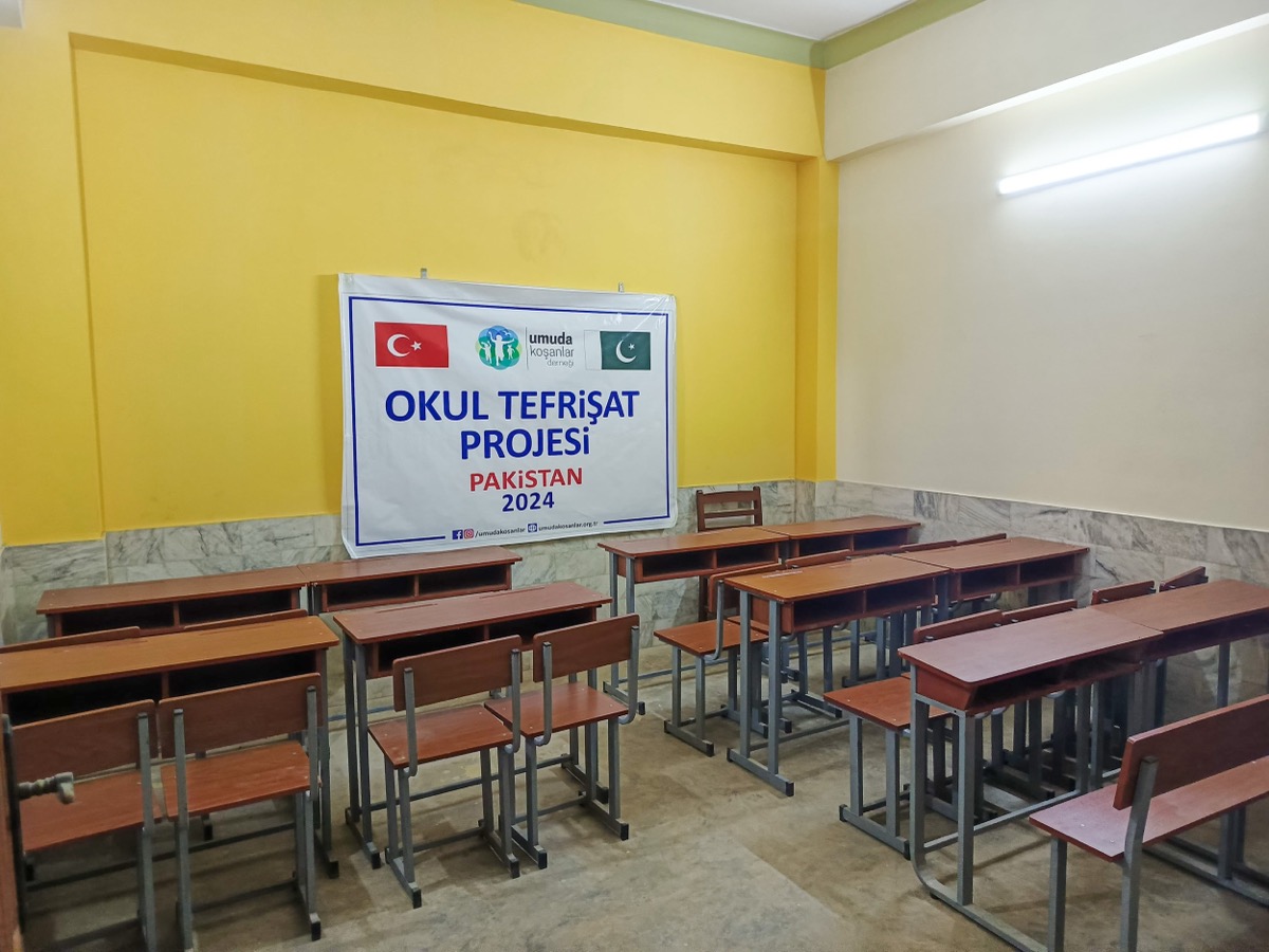 Bu çerçevede, ağırlıklı olarak Arakanlı Müslüman mültecilerin yaşadığı Karachi şehrindeki bir okulda eğitim gören öğrenciler için okul tefrişat desteği sağladık. Okulda sabah ve öğleden sonra vardiyalarında eğitim gören toplam 400 öğrenci bu projeden doğrudan faydalanacaktır.