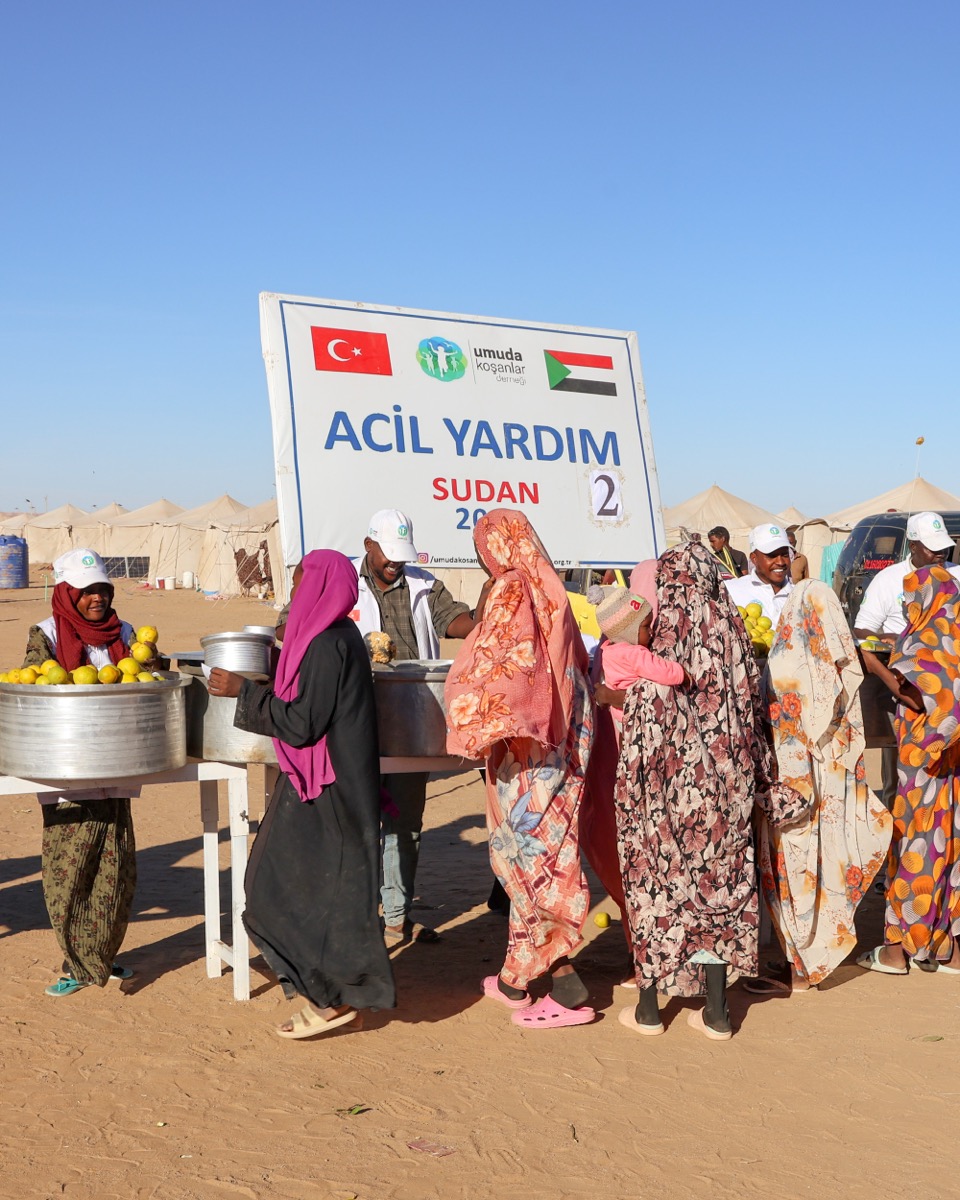 Bu koşullar altında, kamplarda yaşayan ailelerin günlük beslenmeye erişimini desteklemek amacıyla sahada doğrudan gıda desteği sağlamayı önceliklendirdik. Umuda Koşanlar Derneği olarak, Sudan’da hayata geçirdiğimiz Umut Aşevleri Projesi kapsamında Al-Dabbah bölgesindeki kamplarda yaşayan ailelere sıcak yemek desteği sağlıyoruz.